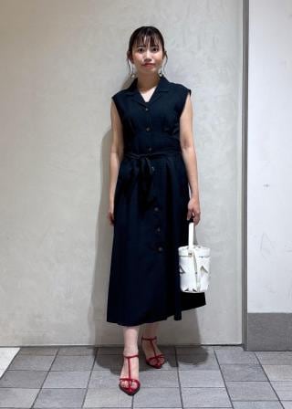 抜け感のあるオープンカラーで、ウエストのダーツが程良く体にフィットし、すっきりと細見えするワンピースです。