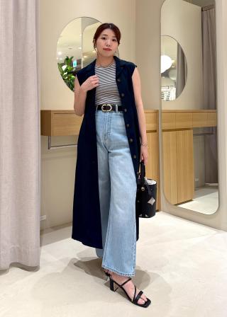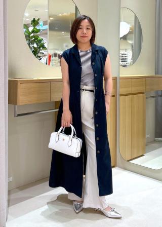 ボタンダウンシャツタイプですが、決してラフにはならず、ジレとして合わせる時もフェミニンなラインなので、パンツ以外にもロング丈のフレアスカートなどで印象をガラッと変えて着回しを楽しみたいなと思います。ネイビーなら、子どもの学校行事にも着ていけそうでより重宝しそうです!