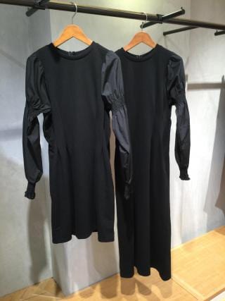 綿混のポンチ素材と布帛のドッキングワンピースです。