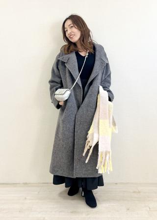 ・スカートはサイドギャザーデザインでバサっと分量感がありレディーなシルエット。