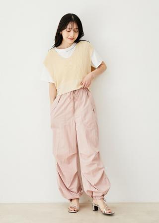 ベストもシャリ感のあるざっくり編みニットにしています。