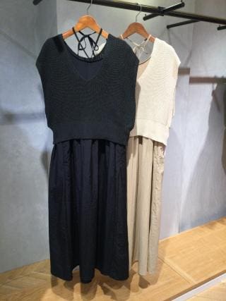 ・ベストとワンピースが微配色になっているところもコーデの幅を利かせられる、高見えポイントになっています。