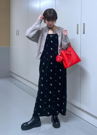 ・秋冬感を取り入れるのにピッタリなベロア素材のキャミワンピース。