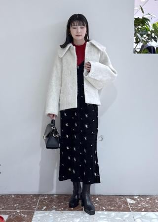 ベロアの生地を活かして、インナーはTシャツからリブニットまで様々な合わせが出来ます。