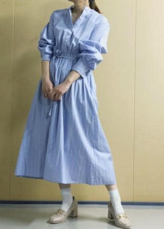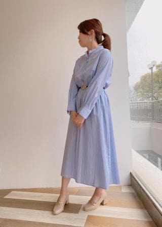 【鎌倉シャツ×ViS】スタンドカラードロストワンピース