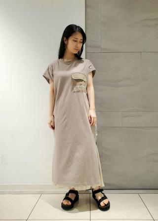 異素材のナイロンポケットがスポーティなイメージのワンピース。