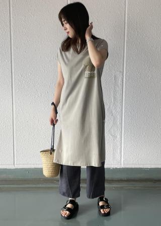 スリットが深めに入っており、足の付け根くらいまであるので、一枚で着るより、パンツやスカートなどに合わせてレイヤードスタイルがオススメです。