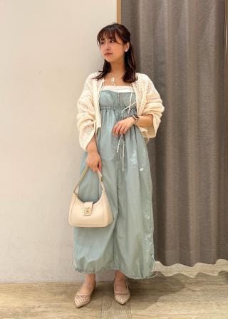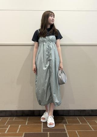 ・今年トレンドのカップディテールと裾ドロストによるバルーンシルエットのキャミワンピース。