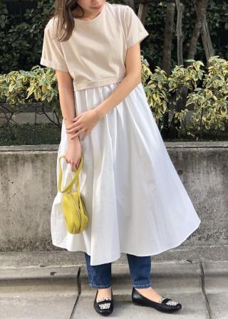 【WEB限定】異素材コンビ配色バックティアードTシャツワンピース