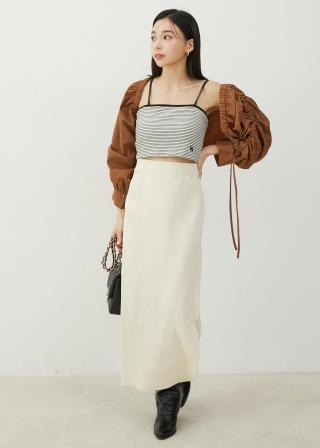 ・シャツボレロはドロストリング仕様でリボンで絞ることができ形の変化を楽しめます。