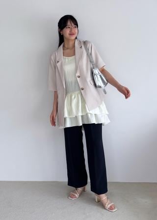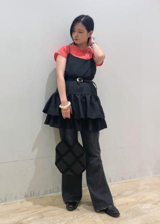 裾のティアードを活かしてニットやジャケットとのレイヤードスタイルやTシャツなどでさらっと1枚で着るのもおすすめです◎