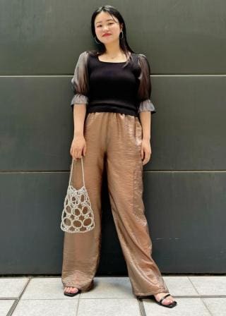 カジュアルにTシャツやタンクはもちろん、今年人気のシアーやラメニットなど女子度があがるトップスあわせはおしゃれなコーディネートになります。
