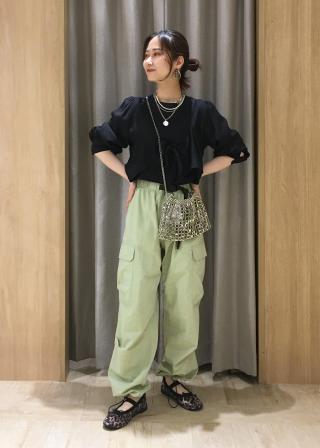 すっきり履けるタイプのカーゴパンツなので低身長な方にも履いていただけやすいと思います。