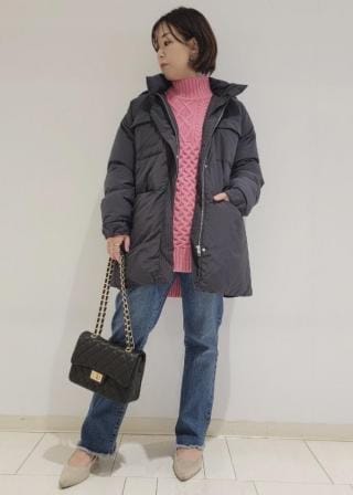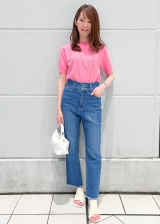 普段はあまりボトムスにトップスインするスタイルはしませんが、こちらのジーンズを履く時は、リボンを見せたくてトップスインしちゃいます。