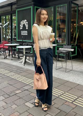 ブラウスなど女性らしい印象のTOPSと合わせてスタイリングするのがおすすめ!