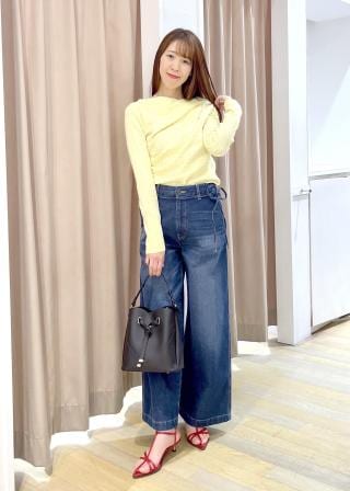 デザインポイントのデニムなのでシンプルなKNITやブラウスなど合わせるだけで様になります。