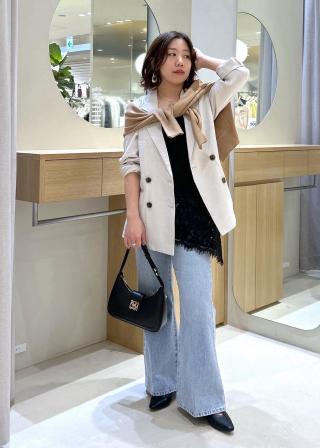 また、シャーリングスリーブレーストップス(品番BVM16140)、レースアシンメトリーキャミ(品番BVF16030)などとのコーディネートも女性らしく、VISらしさをアップデートしてくれます。