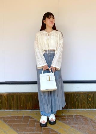 短丈シルエットトップスやピタッとしたトップスをINしたスタイリングがオススメです◎