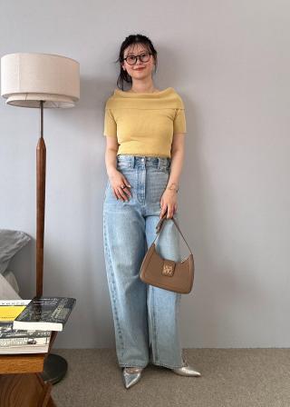 ハイウエストなので、トップスはコンパクトめがおすすめです!
