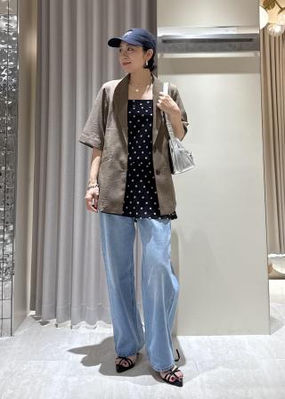メンズライクなルーズシルエットなので、女性らしいトップスやコンパクトなサイズのものとスタイリングして頂くのがおすすめです。