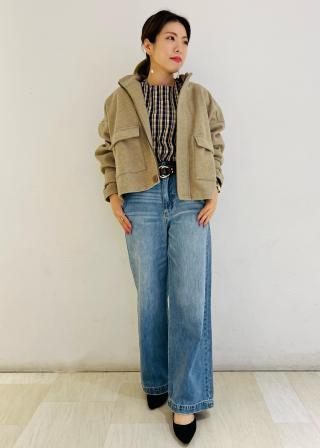 ロマンティックなトップス合わせ、秋のジャケットスタイルやTシャツスタイルがおススメです。