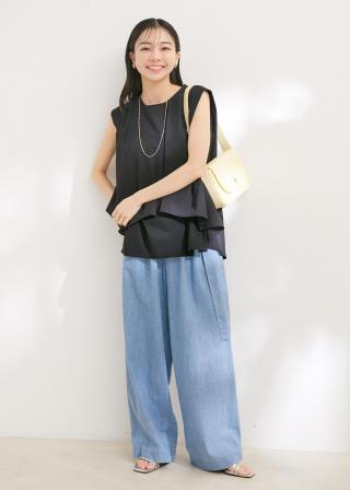 ハイウエストなのでトップスインがおすすめ◎