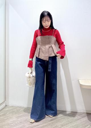 ハイウエストで太めなベルトで締めることで、ワイドシルエットも綺麗に強調されます。