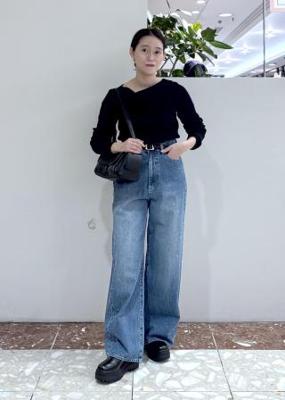 ウエストは少しゆとりがありますが、秋冬はニットをインしたりするのでぴったりです。