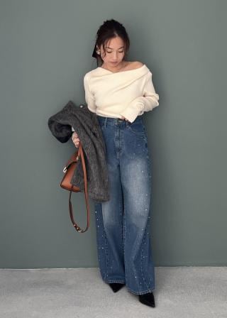 ビジューデニムパンツ