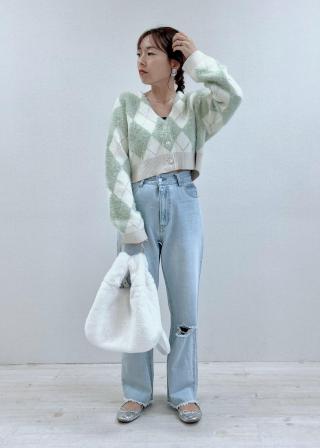 ハイウエストなので短丈トップスとの合わせがおすすめです。