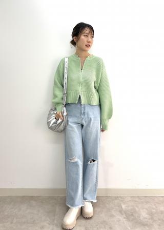 ハイウエストなので短丈トップスとの合わせがおすすめです。