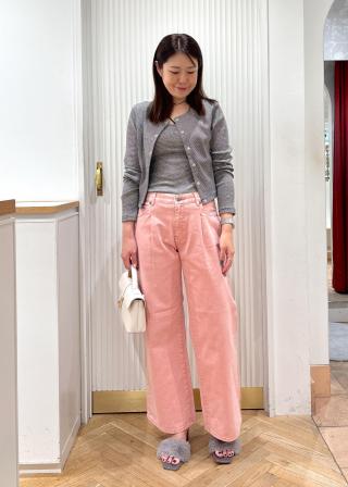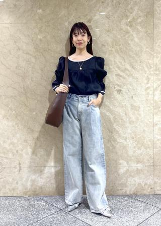 加工をたっぷりといれヴィンテージ感のある風合いを大事にしているので、レースアイテムなどの女性らしいシルエットのアイテムやジャケットなどきちんと感のあるアイテム合わせてスタイリングして頂くのがおすすめ。
