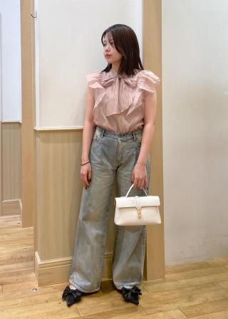 加工をたっぷりといれヴィンテージ感のある風合いを大事にしているので、レースアイテムなどの女性らしいシルエットのアイテムやジャケットなどきちんと感のあるアイテム合わせてスタイリングして頂くのがおすすめ。