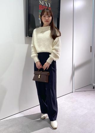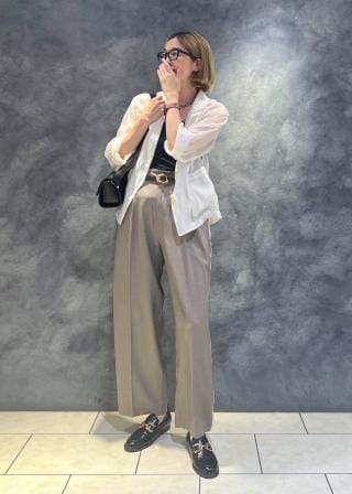 メンズライクなルーズさが特徴のパンツなので、綺麗めなブラウスとスタイリングして頂くのがおすすめです。