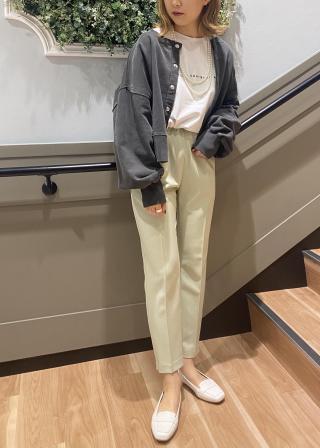 シンプルながらキレイなシルエットで、着まわしが効き何にでも合わせられる万能なパンツです。