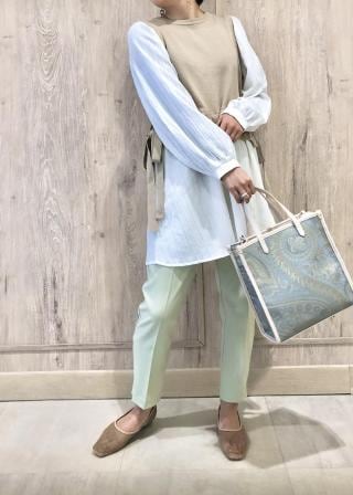 ブラウスなどと合わせたキレイめスタイルがおすすめ。