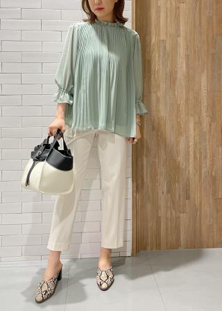 ブラウスを合わせたきれいめにも、Tシャツとのカジュアルスタイルにもお使いいただけます。
