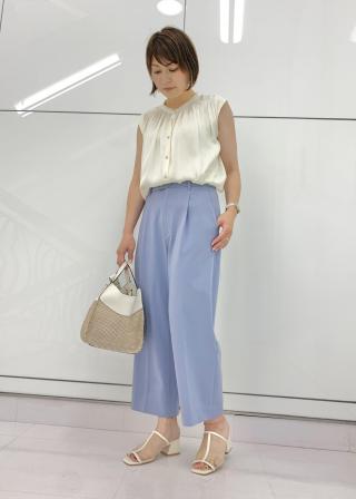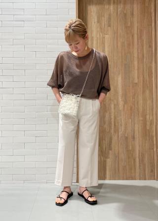 今までのViSの中では新鮮な丈の短めのワイドパンツですが、足元をヒールにしたキレイ目スタイリングはもちろん、スニーカー合わせのカジュアルスタイリングもOKな万能パンツです。