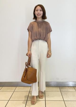 ジャストウエストで脚長効果のあるシルエットがきれいなフレアパンツです。