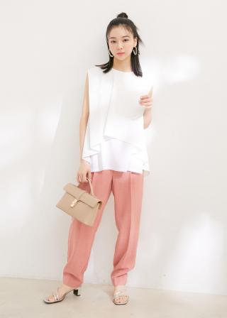 【接触冷感・洗える】美easy共布リボン付きテーパードパンツ【セットアップ対応】