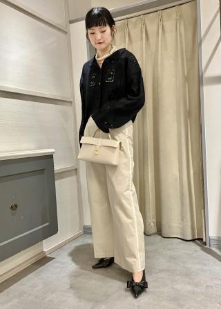 ・フロントウエスト2タックのワイドシルエットで美脚シルエット。