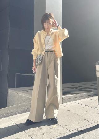 ・フロントウエスト2タックのワイドシルエットで美脚シルエット。