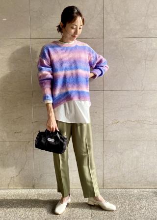 ボリュームスリーブニットをインにしたスタイリングが今シーズンらしくておすすめです。