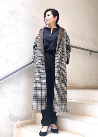 腰回りなどゆったりしたシルエットですが、きちんと感のある素材がオンオフどちらでもコーディネートが決まります。
