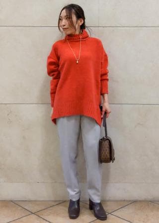 腰回りはゆったりしていますが、膝から下にかけてはすっきり細見えするシルエットで脚長に見せてくれます。