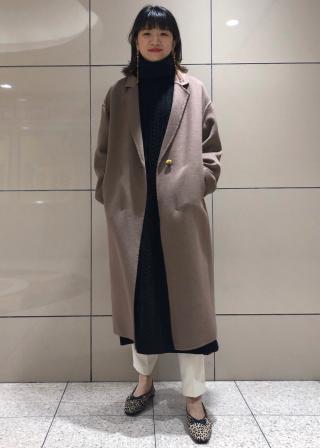 157㎝Sサイズ着用で、着丈はくるぶしがちょうど隠れるほどです。程よくゆとりのあるサイズ感で、ラインをきれいに見せてくれます。スタイルアップにも◎