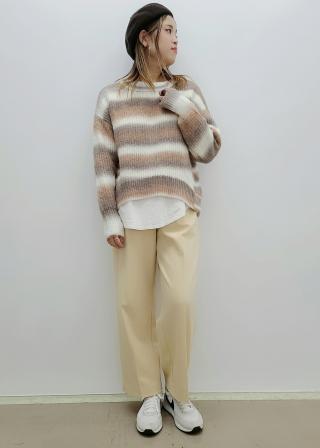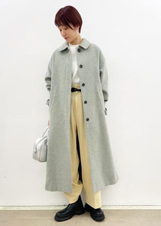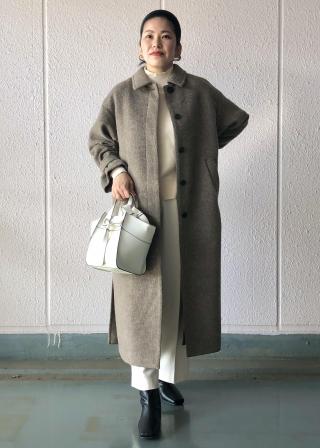表側はサラっとした素材感なので、ミドルゲージやローゲージのフワフワしたニットなどとの相性も良く、冬のスタイルアップにヘビーローテーション間違い無しの一本です。
