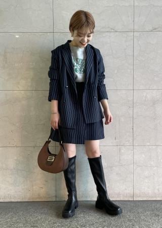 足元はロングブーツに合わせた今年らしいスタイリングが◎