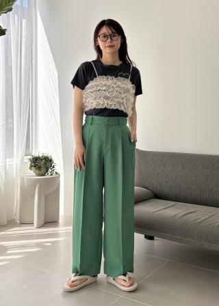 ワイドパンツなので、足のラインを拾いにくいです。