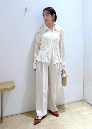 同素材のセットアップトップスとのスタイリングもおススメですが、タックディテールオフショルダートップス(BVM15060)、Tシャツ×コサージュ付きバルーンビスチェ(BVF15060)やアシンメトリービスチェ(BVF35010)などトレンド感あるスタイリングもおススメです。